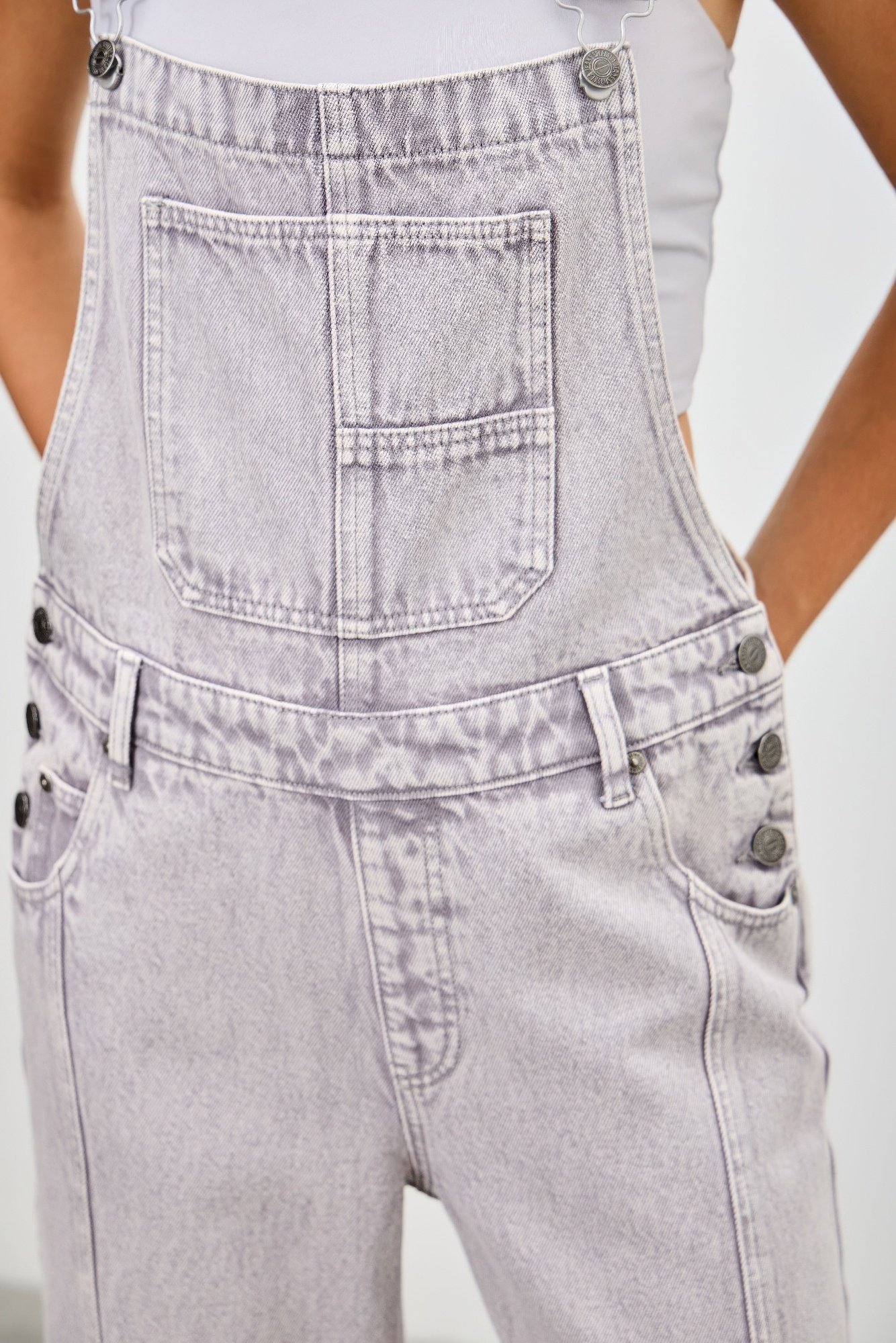 Blending utilitarian style with modern ease, these barrel overalls offer a fresh, fashion-forward silhouette. Designed with a high-rise fit and relaxed barrel-leg shape, they deliver a structured yet comfortable look that stands out. The stretch-infused cotton blend provides just the right amount of give, while the ankle-length cut and clean hem keep the finish sleek. Classic overall features like 5-pocket styling and a front zipper fly ensure functionality without compromising style. These overalls pair effortlessly with tees, tanks, or lightweight knits for easy, all-season wear.