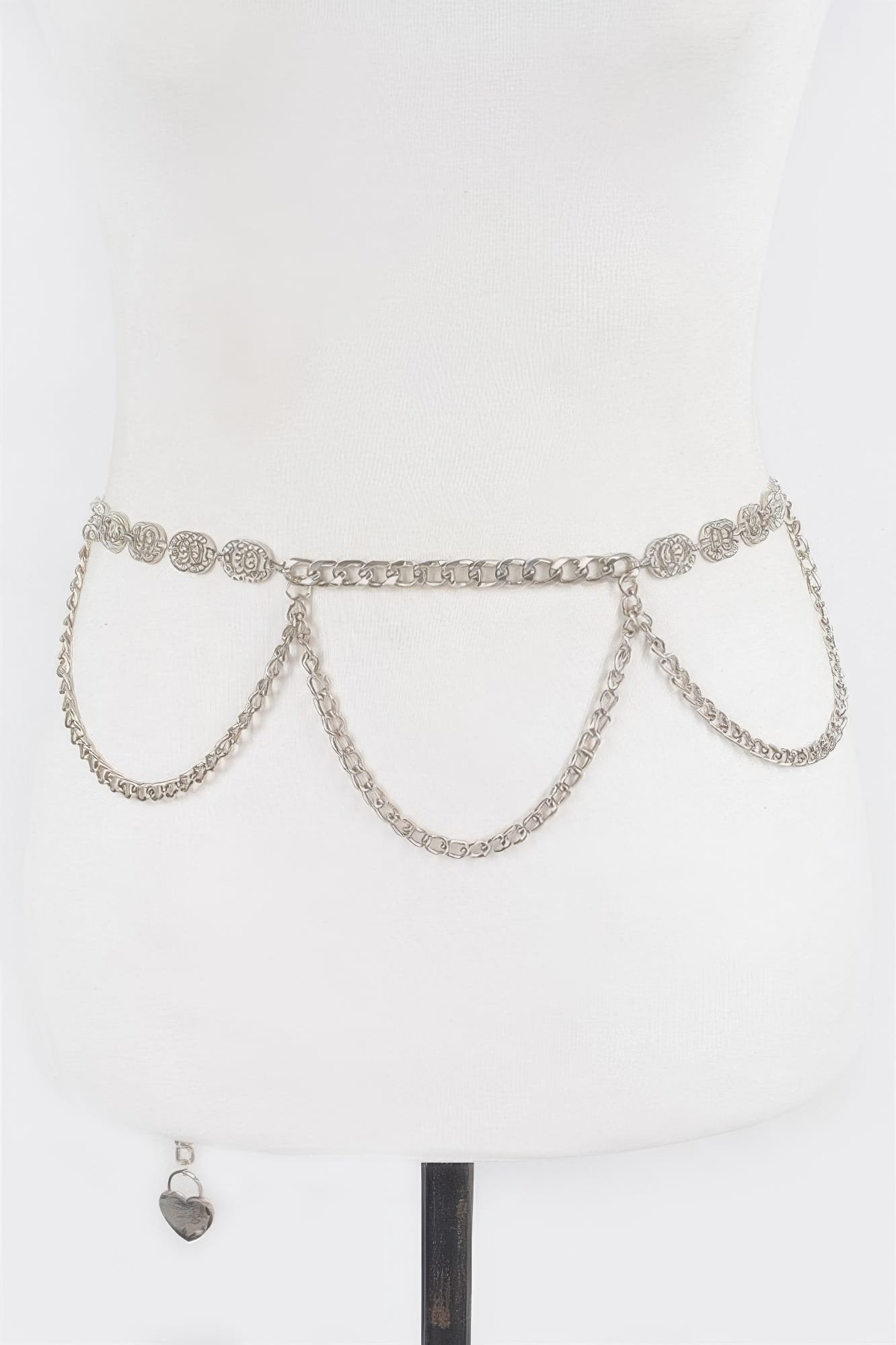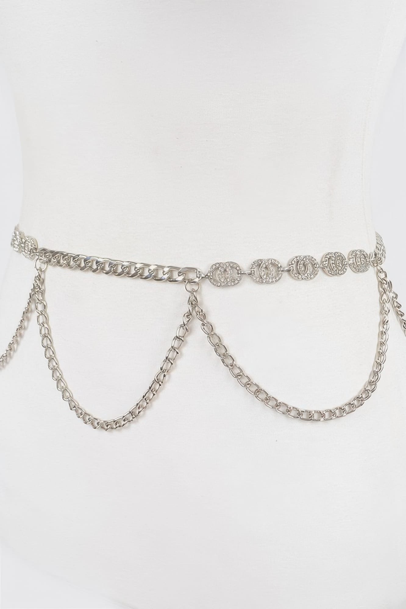 The Chain Belt w/ Stone adds luxurious sparkle to your look with its delicate rhinestone accents and polished chain design
