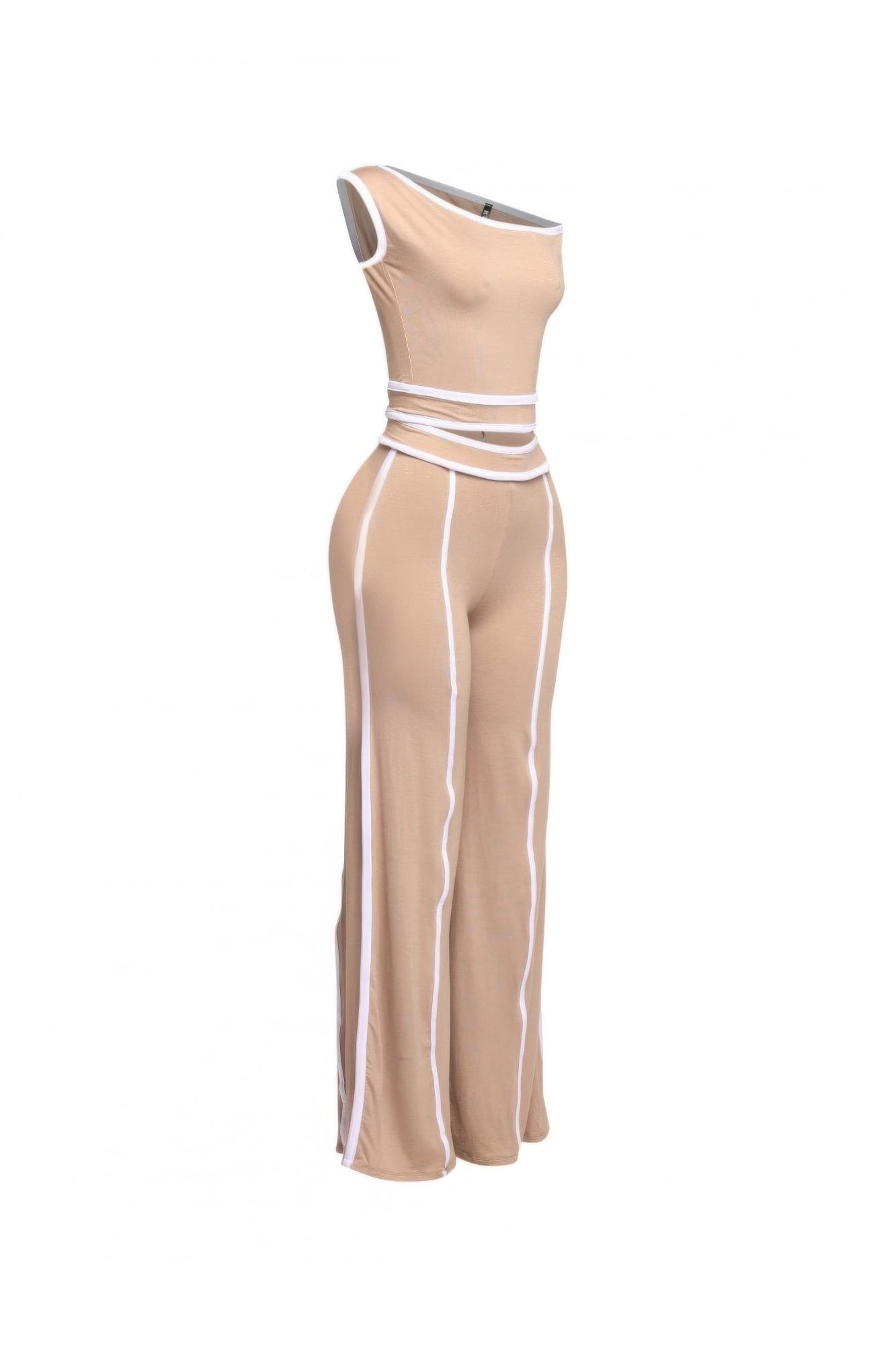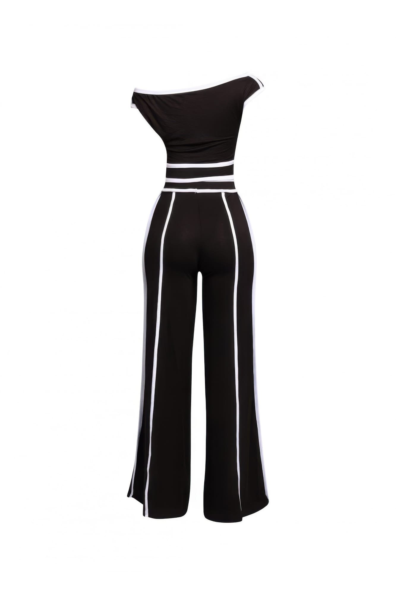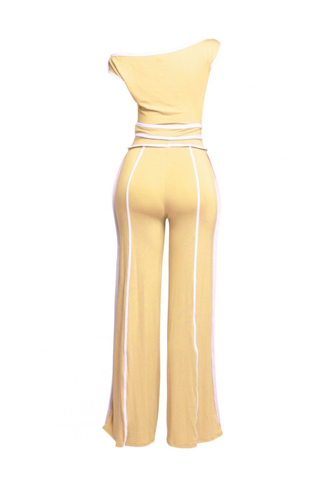 Chic and comfortable, this color contrast detailed off-shoulder set is your go-to for effortless style