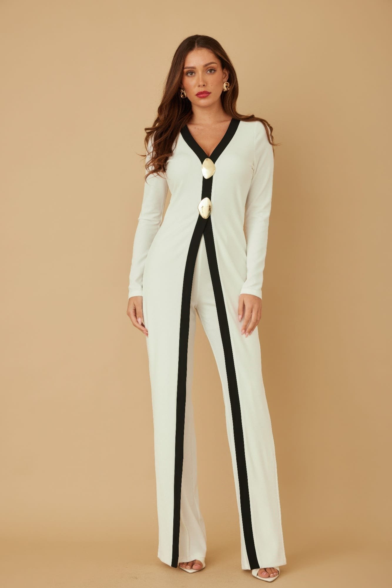 Dramatic and glamorous, the Mirror Stone Long Layer Jumpsuit is designed to captivate. This full-length style features a deep V neckline and long sleeves, offering a bold yet balanced silhouette. The standout element is the open double-layer flap that cascades down, adding flow and sophistication to every movement. Embellished with flat mirror stones and oval accents, the design brings shimmer and structure together seamlessly. Crafted from a stretch-blend fabric for comfort and contour, and finished with a back zipper for a flawless fit, this jumpsuit is ideal for evenings that call for high-impact style.