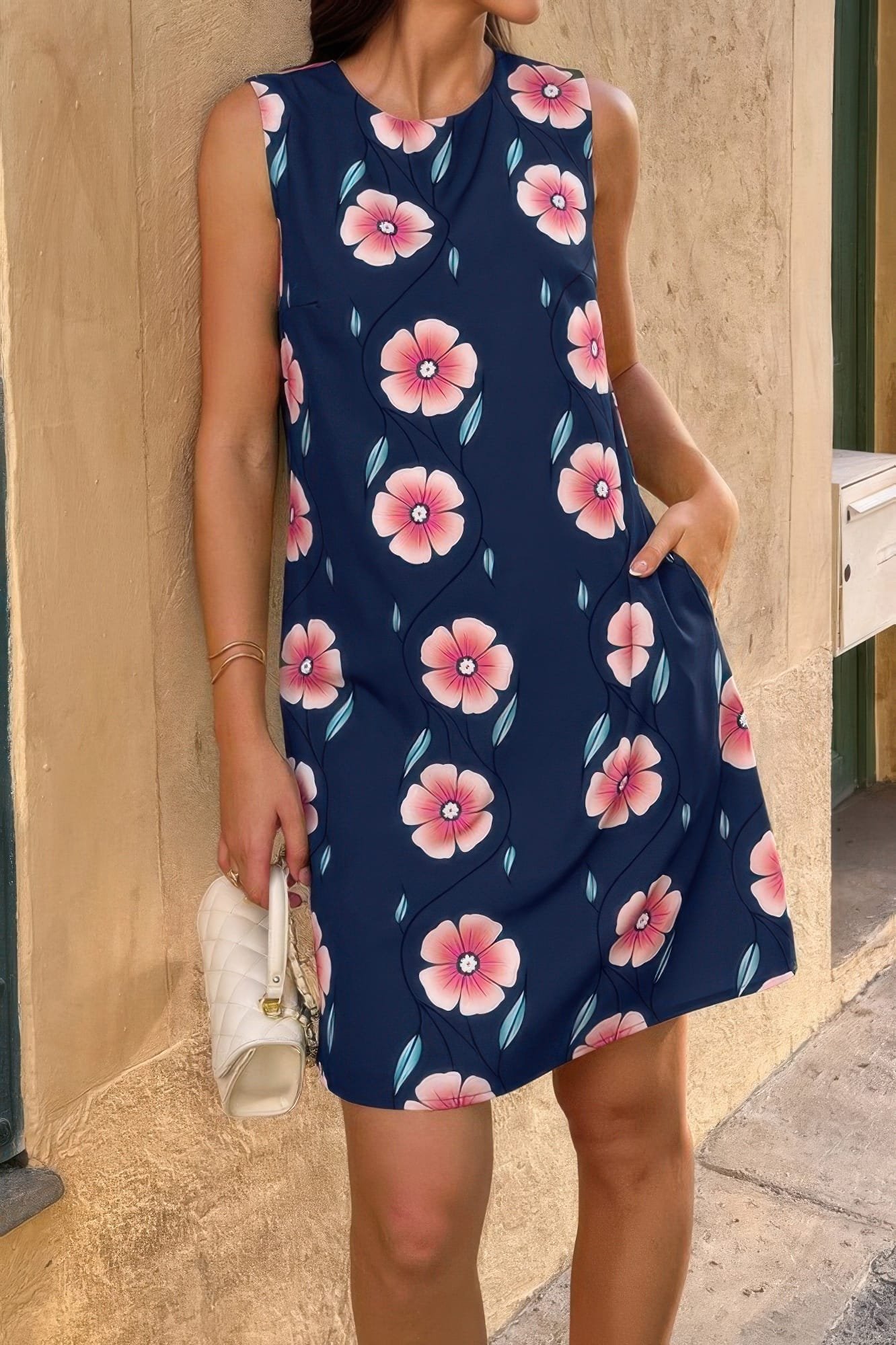 This floral print sleeveless dress offers an easygoing silhouette with timeless appeal