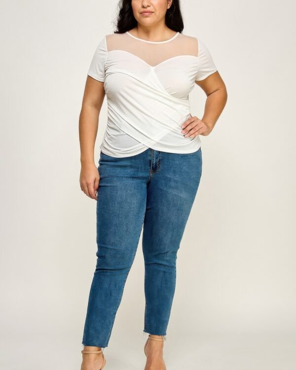 Plus Size Draped Cowl Neck Cap-sleeve Blouse