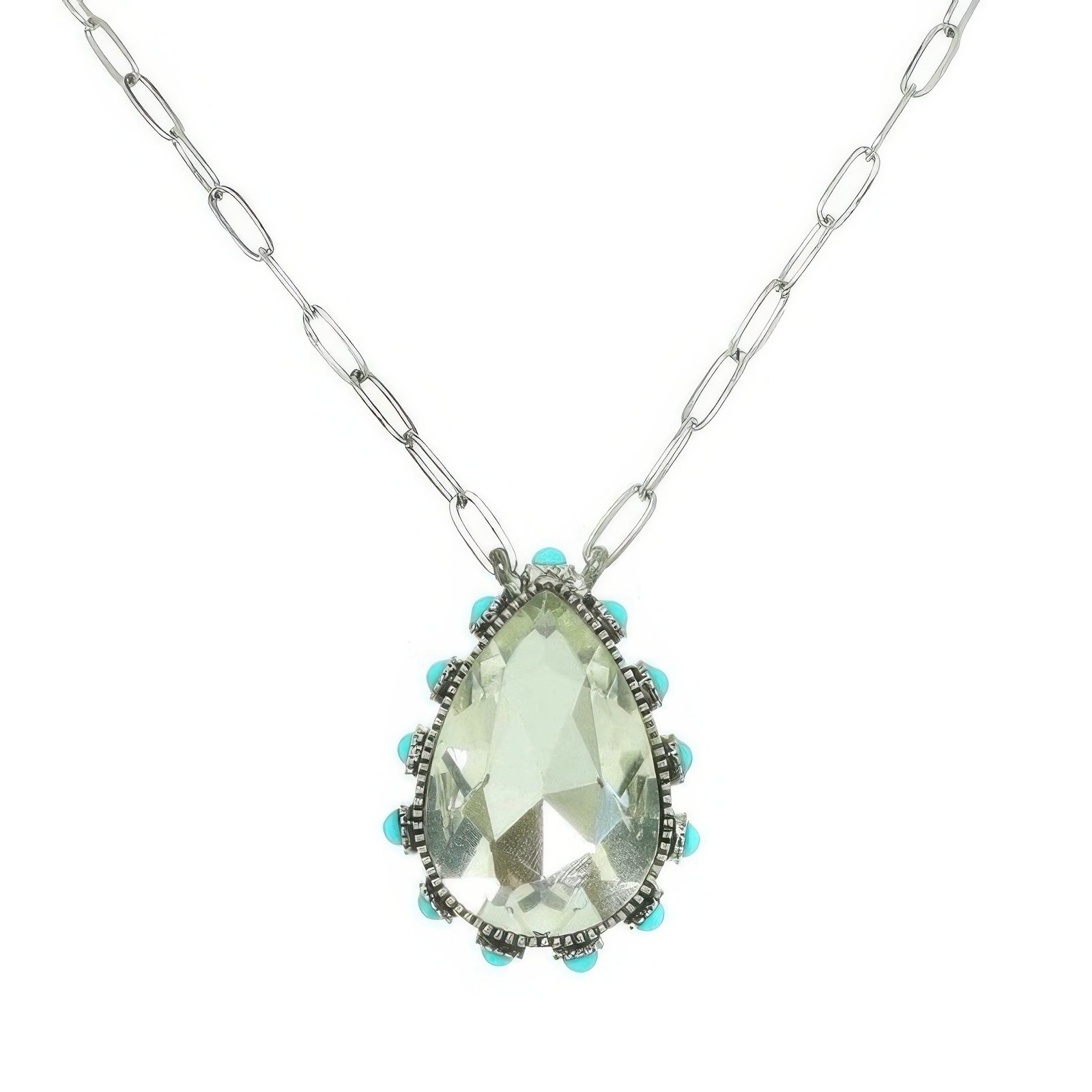 This Teardrop Cut Gemstone Turquoise Necklace captures the spirit of the Southwest with elegance and simplicity. The faceted turquoise pendant glows with natural charm, suspended from a modern paperclip chain in oxidized silver-tone metal. Adjustable for a perfect fit, it layers beautifully or stands alone as a statement piece. Whether worn for everyday inspiration or special occasions, this necklace blends classic cowgirl vibes with contemporary style.