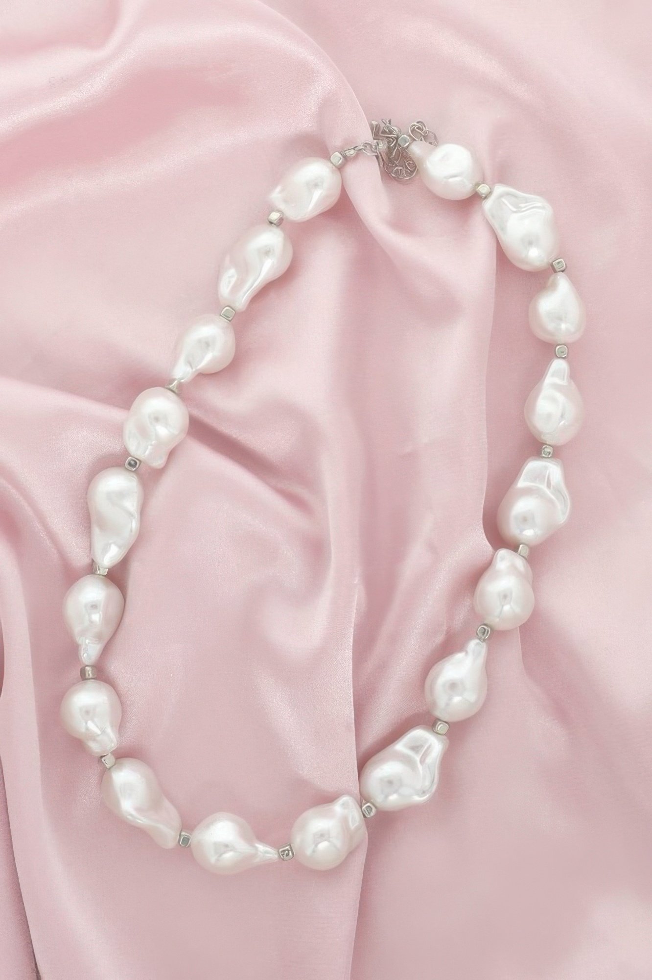Embrace timeless sophistication with the white baroque pearl chain necklace. Featuring luminous, pearlescent baroque pearls, this piece brings vintage-inspired elegance to any ensemble. The 17-inch length with a 3-inch extender allows for versatile styling, perfect for both high necklines and plunging necks. Its shimmering surface and organic shape give the necklace a romantic, upscale feel. Ideal for formal events or bridal moments, this necklace is a stunning addition to your jewelry collection.