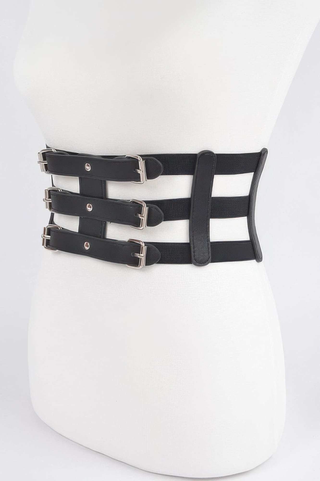 Complete your look with the Wide Elastic Belt, a sleek and versatile accessory designed for both comfort and style. This black belt features durable metal buckles and a wide elastic band that ensures a secure yet flexible fit. Perfect for cinching dresses or adding structure to oversized tops, this essential piece effortlessly combines functionality with a modern edge.