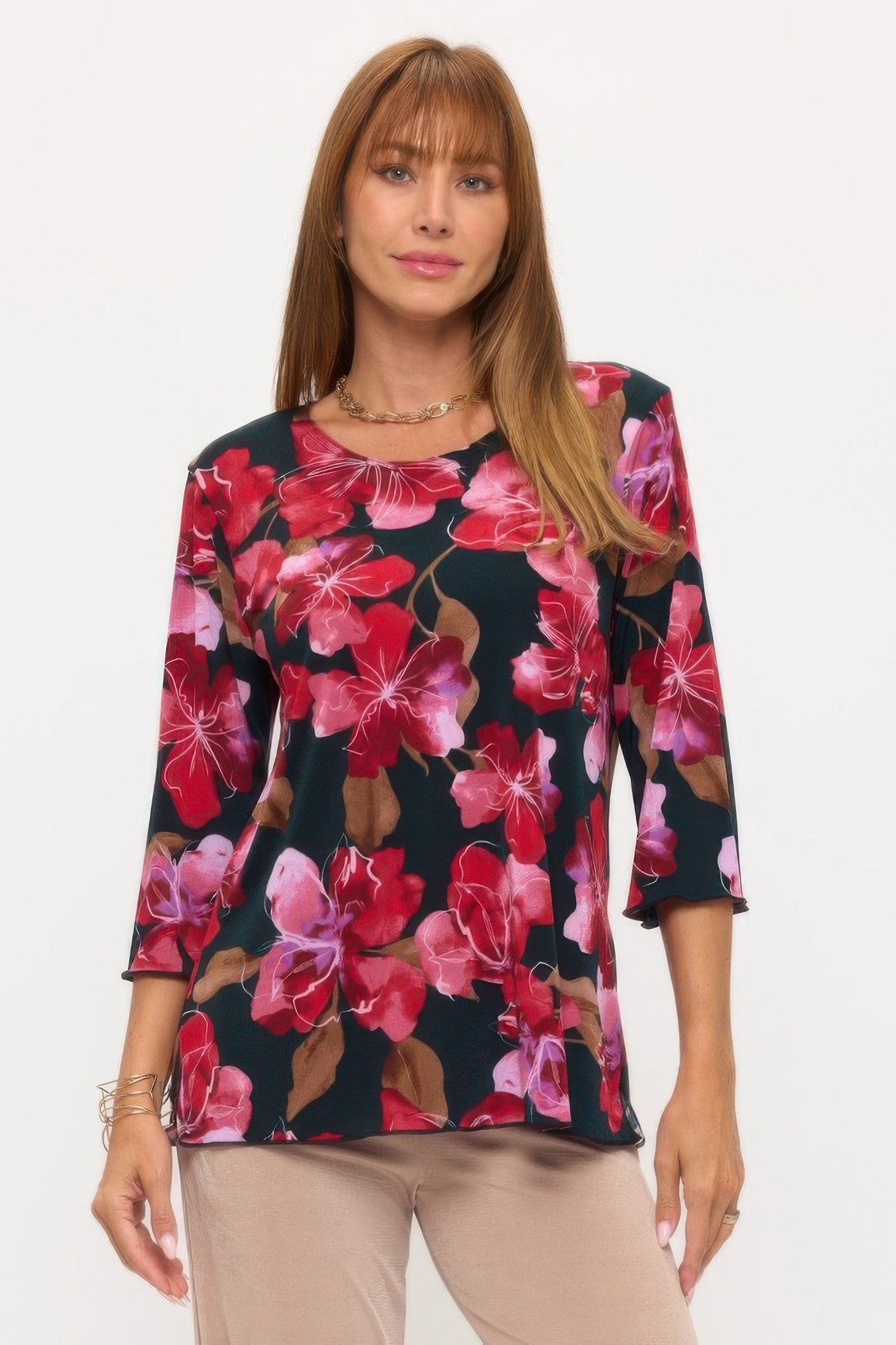 Women’s 3/4 Sleeve Pattern Print Top: Bring a polished finish to your everyday look with the Bns Merrow Top